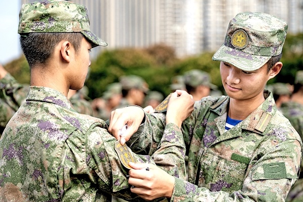 新兵授牌仪式是军旅期间最激动人心的成人礼。 8月1日,全体新学员站在军旗前,举起右拳,庄严宣誓:“我是中国人民解放军战士,我保证听从中国共产党的指引,为人民服务”全心全意……”宣誓的铿锵之声响彻校园,每一个字都表达了对祖国和人民的庄严承诺。2025届毕业生佩戴着同龄人的肩章、胸章、帽徽……当肩章戴在肩上时,很多同学不自觉地站了起来。那小小的肩章,让“军人”这个词从抽象的信念,变成了具体的重量和分量。 责任。